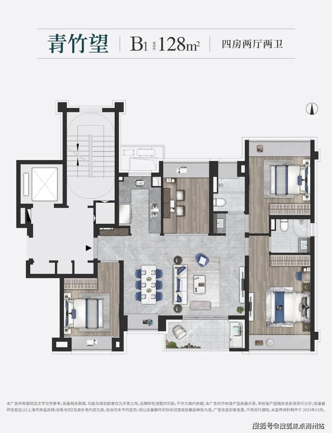 约128㎡4房2卫户型是约99㎡的升级版,四房更能保障业主的全生命周期需求。