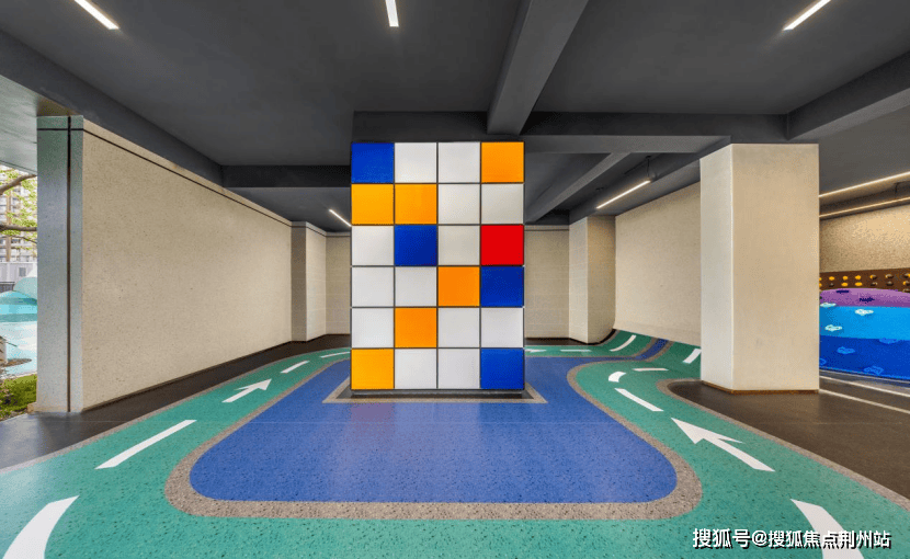 架空层入口处则以明快丰富的色彩与开阔的空间感,构建出充满想象力与安全感的儿童友好环境。