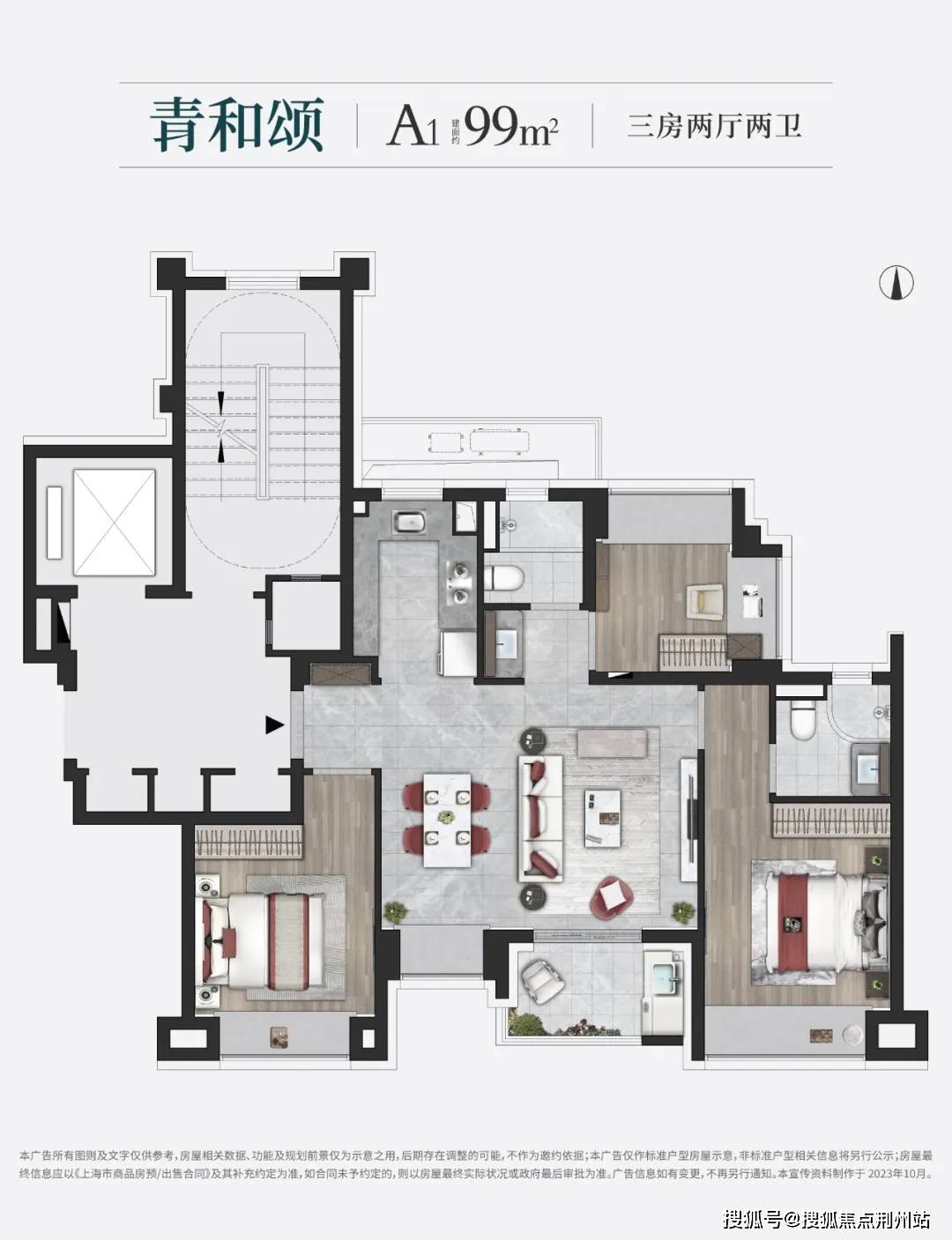 约99㎡3房2卫户型是上海市场中最主流的面积段之一,但印象青城的户型设计却超脱以往。