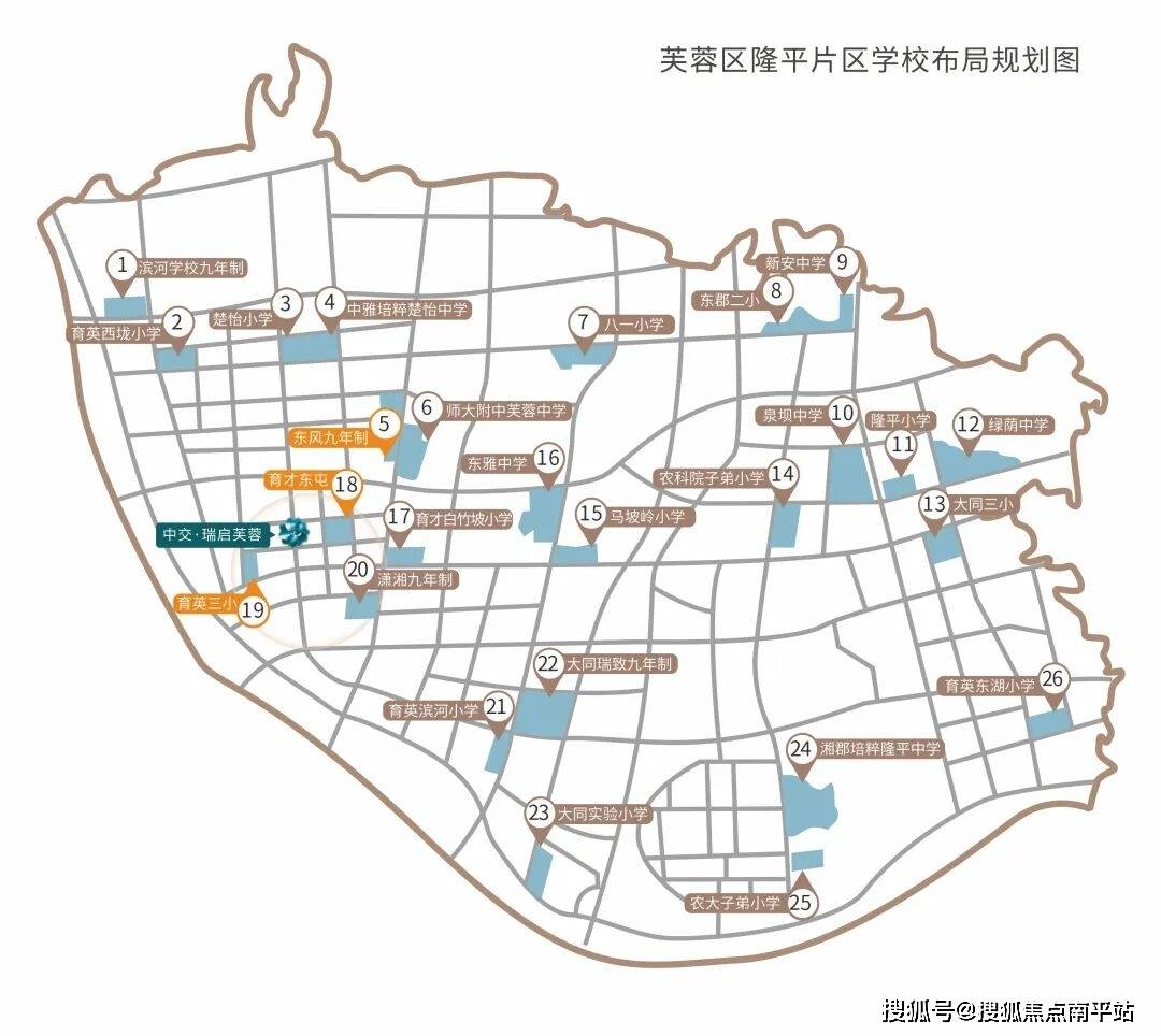 板块内26所规划学校,其中小学15所、九年一贯制学校4所,中学7所。9大优质教育品牌入驻片区,四大名校云集,擎定长沙东部教育高地。