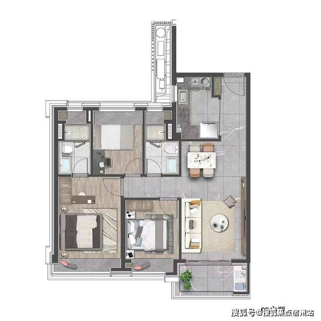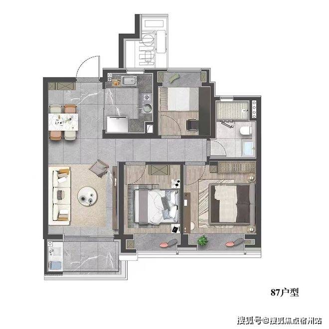 ✅✅中环云悦府售楼处电线、更懂购房者的户型:建面约87㎡3房2厅1卫户型图: