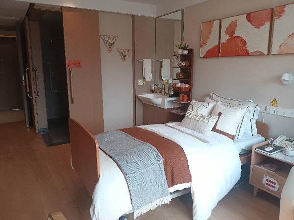 服务体系围绕“住、食、医、养、乐”五养一体展开,构建五星级标准化照护体系。“住”的方面,24小时紧急呼叫系统全覆盖,动静分区的居住布局保障休息质量,美学公园让长者推窗见绿;“食”的板块由专业厨师及营养师团队坐镇,甄选绿色食材,科学合理配餐,还能根据长者健康状况定制个性化膳食,兼顾营养与口感;“医”的服务以社区医院为核心,提供全天候责任医护、慢病持续管理、康复治疗等,看病康复无需奔波;“养”的层面依托17年养老护理经验,设立失智照护专区,为认知障碍长者提供专业化、人性化照护;“乐”的维度配备专业社工,打造复合活动空间,开展书画、手工、文艺演出等丰富活动,还有功能型党建活动,让长者精神生活充实多彩。