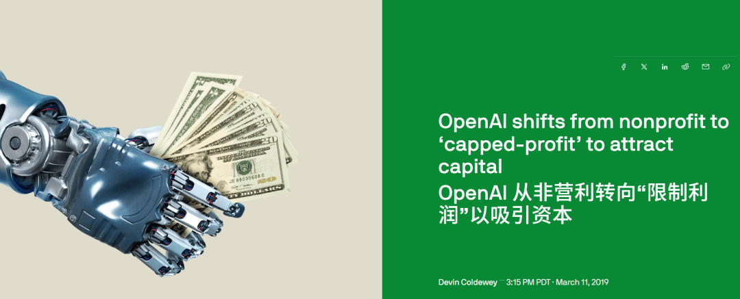 投资协议里有一条令人印象深刻的条款:投资者的收益上限为本金的100倍,超出部分归非营利实体所有——这个设计既吸引了资本,又在名义上保住了「为人类服务」的招牌。