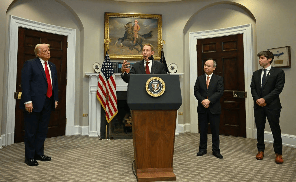 特朗普、软银孙正义、OpenAI奥特曼三人同框宣布:未来四年将向美国AI基础设施投入5000亿美元,OpenAI是这一计划的核心玩家。