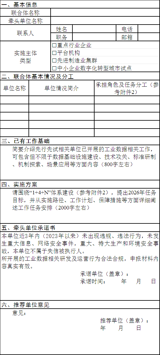 三、面向人工智能赋能的高质量行业数据集建设先行先试的推荐单位为地方工业和信息化主管部门,名称用全称填写。