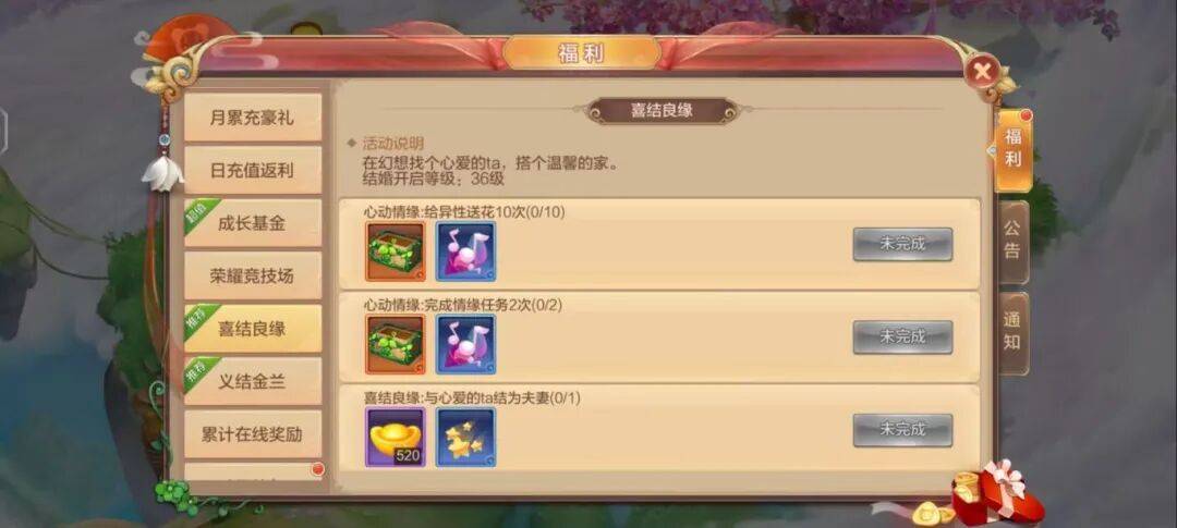 注册后1-60天,在幻想大陆和TA完成情缘任务,获得多份520元宝等丰厚奖励。