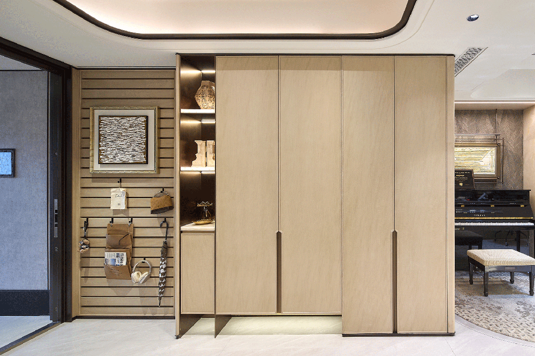 ,将定制化贯穿入户、玄关、客厅空间,兼顾个性化需求与整体美学统一,彰显高阶人群的专属品味从入户开始,