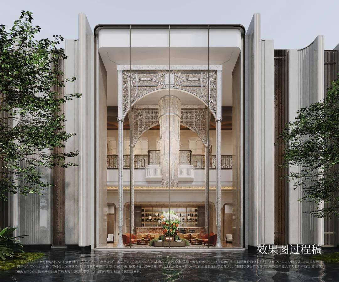 (Cheval Blanc Paris)核心美学,同时融合上海花园饭店、和平饭店、张园石库门等东方海派建筑元素,以“仪式感、纯粹性、细节感”为核心,打造兼具国际风范与海派底蕴的建筑格调仪式感上,复刻巴黎白马庄园标志性阵列柱廊、穹顶、花格窗