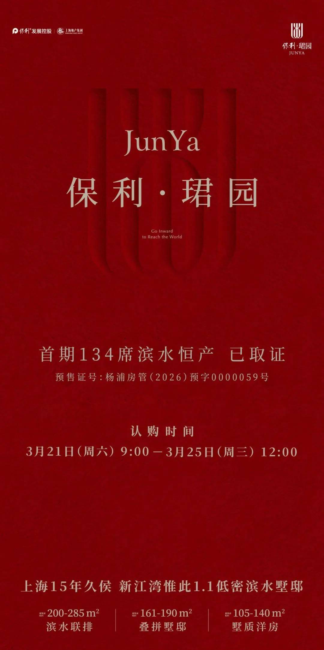 新江湾板块保利·珺园明日开启认购,将推134套建面约105-270m²低密产品!