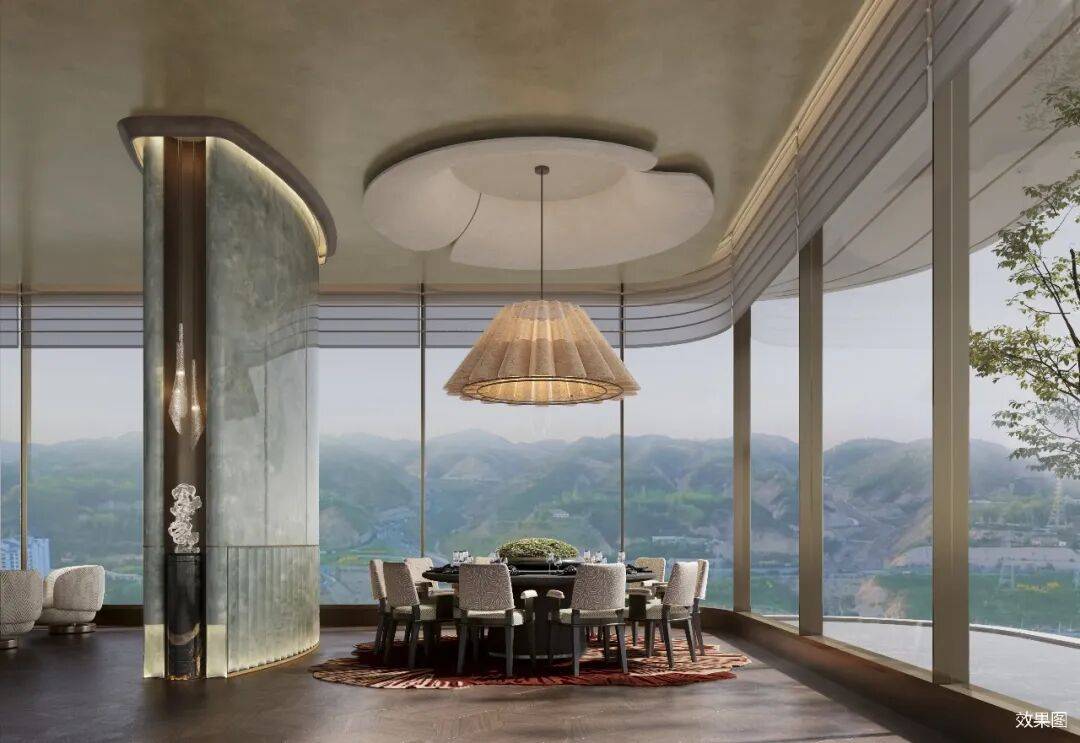 居于此,近旁是全明全景客餐厅,俯瞰是社区盛境,仰望是城市远景,可以同时饱览天空和大地,更集极致采光+极致视野+极致空间于一体。