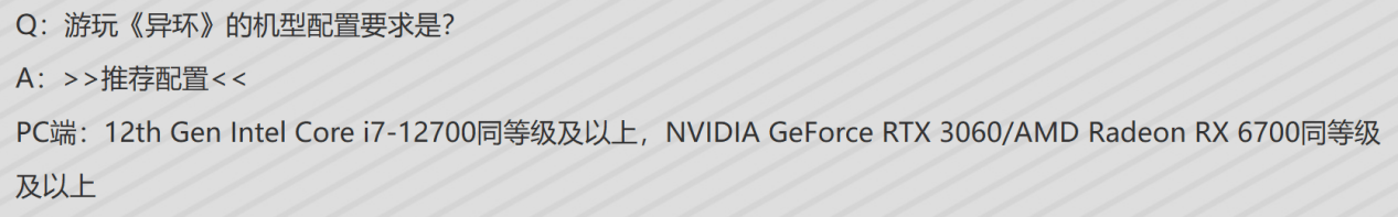 看到画质如此出色的《异环》,玩家们最为关心的肯定是自己的电脑能不能带得动的问题。就官方给出的系统需求来说,这款游戏对于硬件的要求并不是太高。酷睿 i7-10700+GTX 1660/RX 5600 即可满足游戏的最低运行需求。而推荐配置为酷睿 i7-12700 及其以上+RTX 3060/RX 6700,意味着当下主流的中端显卡就够用了。