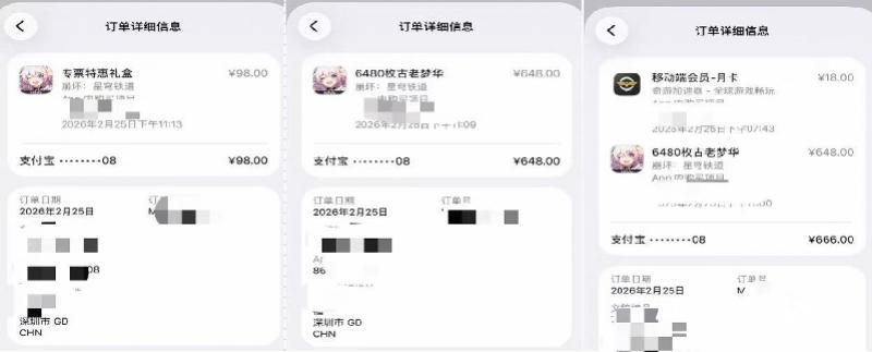熊先生介绍,2月28日查询账单才发现,今年春节期间,在2月7日至2月28日,家中10岁小孩未经家长同意,在米哈游《绝区零》《崩坏:星穹铁道》充值共计10572元。小孩在苹果手机上下载游戏,手机绑定的是已经实名认证家长身份证的苹果账号,该账号此前绑定了支付宝。